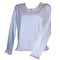 This top suits many occasions. Wear it as bedtime loungewear or let it pair with jeans and jackets for a chic daytime look. The fit is relaxed but gently shaped. It gives a soft silhouette without clinging tightly. The petite ruffle and touch of pink detail at the neckline provide a unique twist.